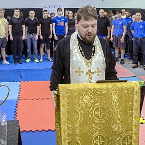 Открывал мероприятие заместитель председателя Отдела иерей Иоанн Мамаенко, который совершил водосвятный молебен и выступил перед собравшимися с напутственными словами, благословив проведение турнира.