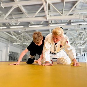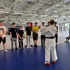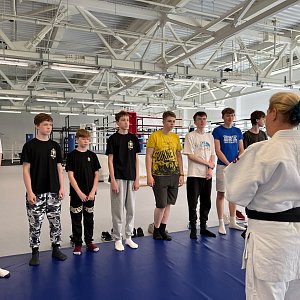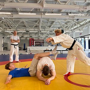 Практической частью встречи стали занятия по основам техники безопасности падения.