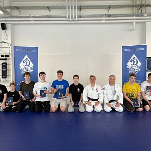 Организаторы вручили тренеру и воспитанникам центра единоборств «Довмонт» книгу «Организационно-методические основы развития самбо» и фирменные блокноты и ручки «Динамо».