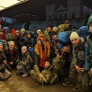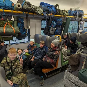 Дети и взрослые в спасательных жилетах, прихватив с собой рюкзаки по очереди перегребли с одного берега на другой и благополучно продолжили путешествие пешком.
