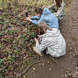 Ниже храма у реки и далее на несколько километров по правому берегу вверх по течению располагаются остатки военно-полевых укреплений Советской армии: линии окопов, стрелковые ячейки, укрытия для личного состава. В декабре 1941 года на этой территории проходил рубеж обороны Москвы. Дети турклуба "Перевал" с неподдельным интересом рассматривали эти "шрамы Земли" - живое подтверждение героической военной истории нашей Родины.