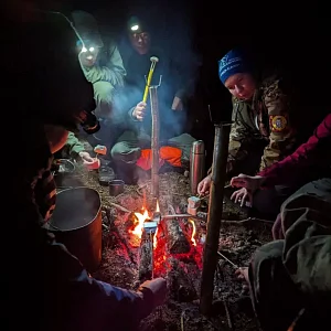 Многие дети в первый раз ночевали в палатке и переживали что при температуре воздуха +5 градусов спать будет холодно, но опасения их оказались напрасными. Правильно подобранные спальники, коврики, двухслойные палатки и тепло товарищей помогли всем выспаться и даже ранний подъём в 6 утра был не таким трудным т.к. на свежем воздухе человек отдыхает лучше и высыпается значительно быстрее чем в городе.