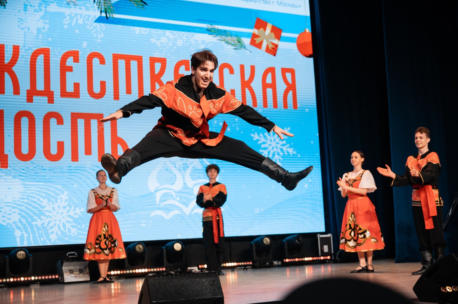 В праздничном концерте приняли участие: воспитанники храма Покрова Пресвятой Богородицы в Медведково с музыкально-литературной композицией «В Рождество все немного волхвы…», воспитанники Православного ансамбля Храма Всех Московских Святых с вокальными рождественскими композициями; ансамбль «Колокола России»; образцовый театр танца «Вариация»; лауреаты международных и всероссийских конкурсов и фестивалей «Московский казачий ансамбль песни и танца»; артист цирка, обладатель серебряного клоуна - Сергея Коцуба с номером «Эквилибр на тростях»; заслуженная артистка России, заслуженная артистка ДНР, лауреат Международных и Всероссийских конкурсов, участница концертной вокальной программы для бойцов СВО, солистка ансамбля песни Культурного центра ВС РФ им. М. В. Фрунзе, солистка ансамбля ФСБ РФ, солистка вокального дуэта «Лада Фолк» – Анастасии Артемовой; артисты Цирка на Вернадского с программой «Дрессированные попугаи»; чемпионы России по футбольному фристайлу «Freestyle Sport»; Вера Воронина с номером комическая эксцентрика с собачками; а также любимое всеми детьми шоу мыльных пузырей.