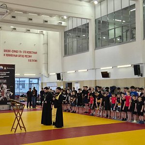 Торжественное открытие началось с общей молитвы и окропления святой водой всех участников соревнований. Поднятие флага и пение гимна России задали особый патриотический настрой.