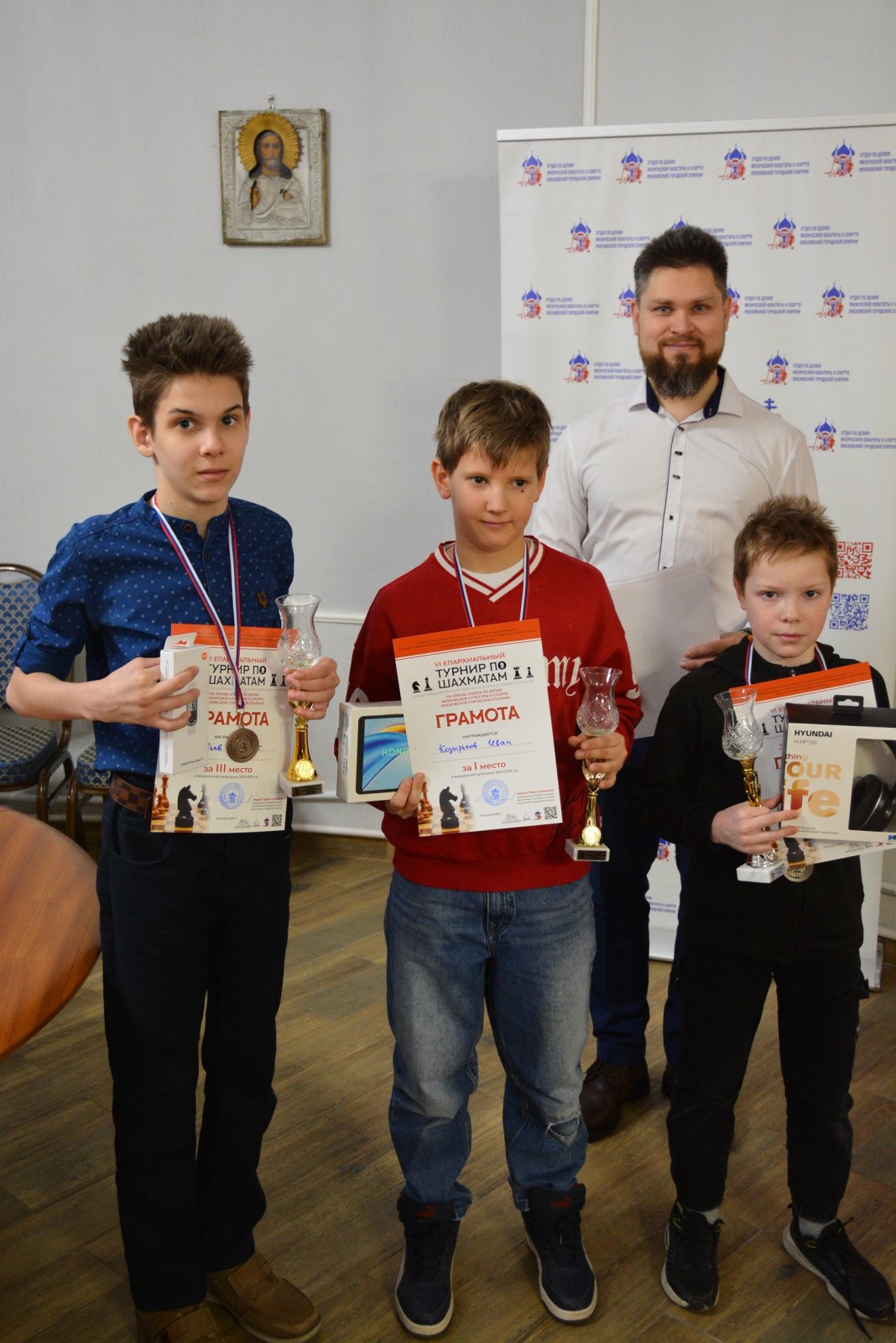 На церемонии награждения председатель Отдела иерей Павел Симонов и главный судья турнира вручил призерам медали, грамоты, кубки, а также специальные призы от Отдела.