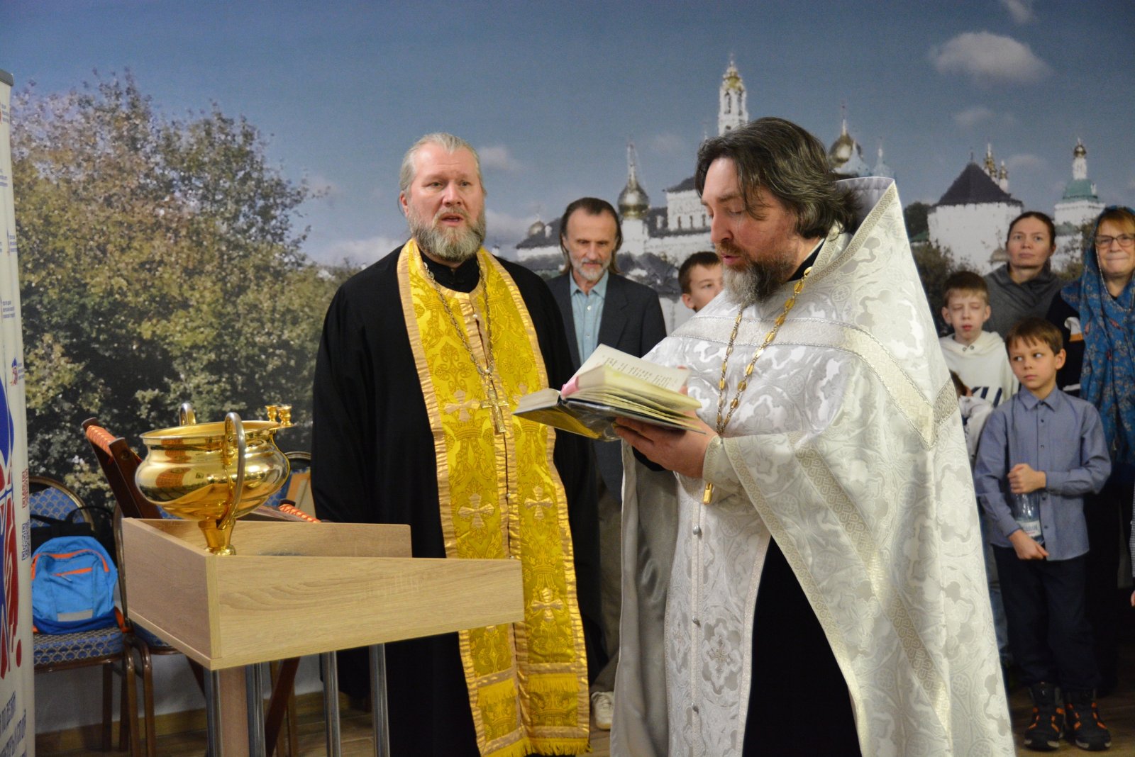Перед началом финального этапа председатель Отдела иерей Павел Симонов и ответственный за деятельность воскресных школ в Северо-Восточном викариатстве иерей Андрей Родионов совершили водосвятный молебен, на котором участники и их близкие совместно пели слова молитвы, испрашивая Божьего благословения.