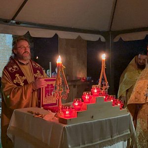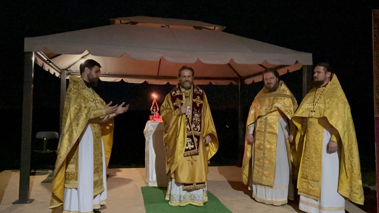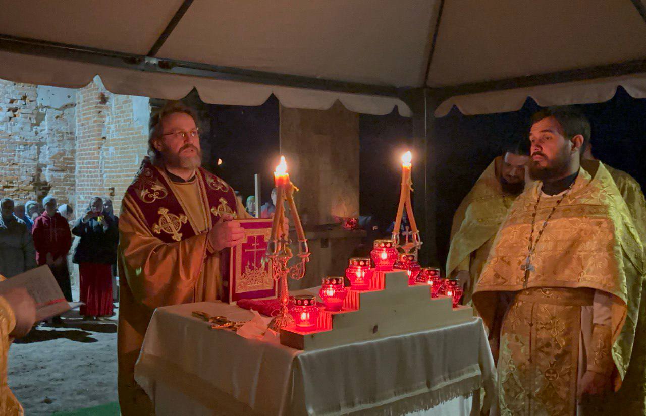 3-го июня 2025 г. архиепископ Фома совершил ночную Божественную Литургию в разрушенном храме урочища Лихачево.